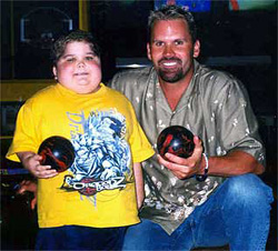 Denny gets a bowling lesson from his buddy... Trevor Self...